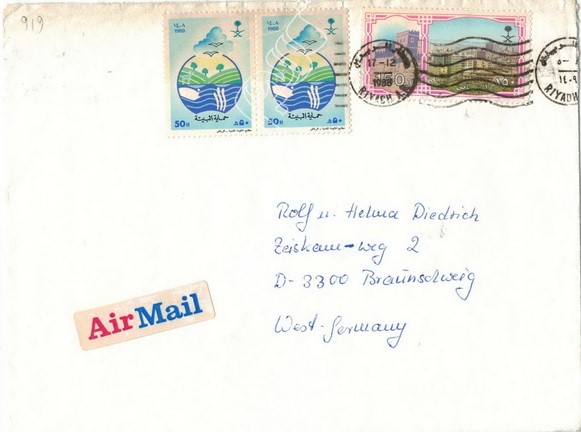 طابع الكعبة 5 (طولي) و طابع يوم الصحة العالمي 1990م