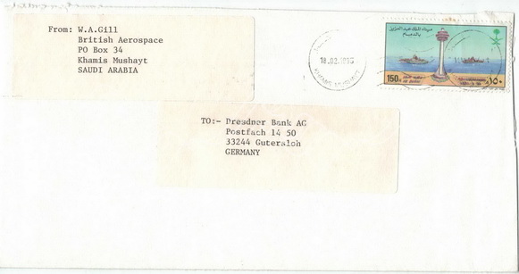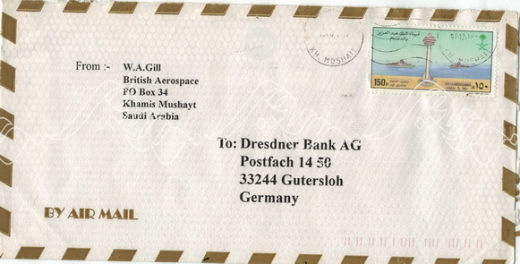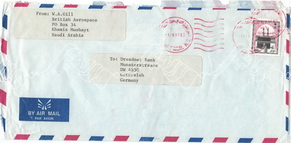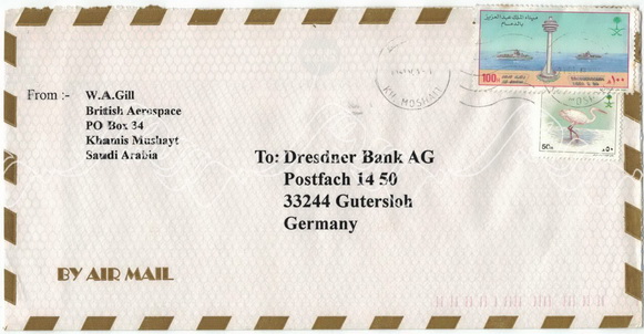 مغلف من بنك الرياض لمدير الفرع بشرورة