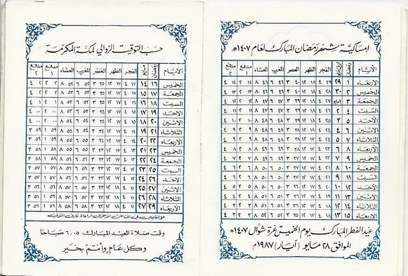 إمساكية رمضان 1407 هـ = 1987