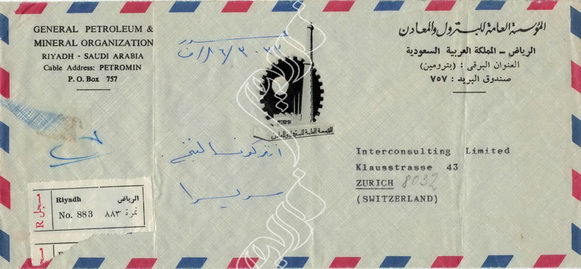 مغلف مسجل بريد حكومي إلى سويسرا