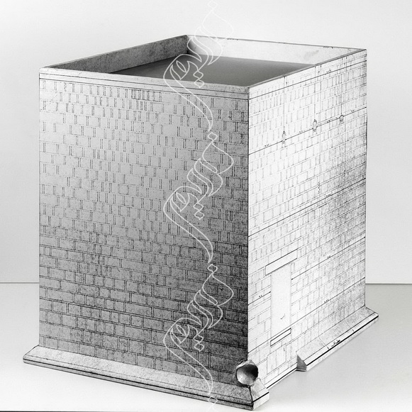"عام 1427 هـ مجسم مجسم الكعبة المشرفة بدون كسوة قطعة أصلية نادرة جداً مخططات الترميم. نادر جداً. مقياس الرسم 1:30 يعرض هذا المجسم للكعبة المشرفة بدون كسوتها كما يندر رؤيتها. وقد قمنا بإعداده وفق المخططات التي جُهّـزت من أجل ترميمها عام 1417 هـ (1996 م)، وهو يعرض هنا لأول مرة. يُلاحظ البناء المحكم والأحجار الضخمة التي استعملت في بناء البيت الحرام، والتي قُصت من ""جبل الكعبة"" على حافة وادي إبراهيم عليه السلام. ويمكن رؤية المدخل الثاني للكعبة المشرفة في جدارها الغربي والذي سدّته قريش عند بنائها للبيت قبل البعثة النبوية. "