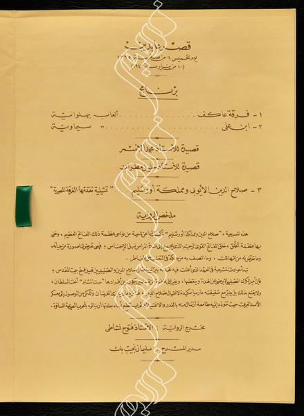 وثيقة برنامج في قصر عابدين على شرف الملك عبد العزيز في زيارته للقاهرة
