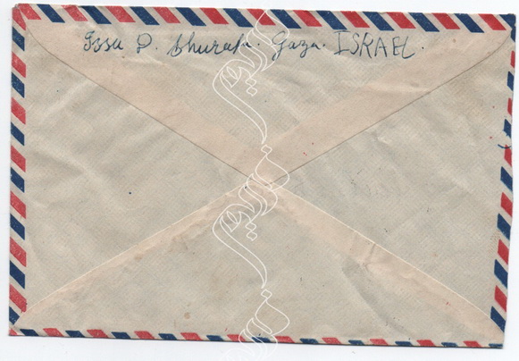 "1969م مغلف تاريخي نادر فلسطين ـ غزة أنشأت في أعقاب حرب الستة أيام وبعد احتلال إسرائيل للضفة الغربية وغزة قناة ترانزيت لتوصيل بريد أهل فلسطين إلى أسرهم في السعودية والعكس فكانت تصل رسائلهم بطوابع إسرائيلية وأقوم بتحويل رسائلهم المغلقة ببريد ألماني إلى السعودية هذان مغلفان بعنوان رفيق السكن نبيل سويدان استمرت قناة الترانزيت من 1969 إلى 1972م وفي مجموعة ""وثائقية آل إلياس"" عدد كبير منها باسمي"