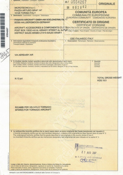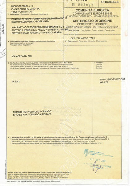 وثيقة فاتورة مبدئية لقطع غيار للسلاح الجوي