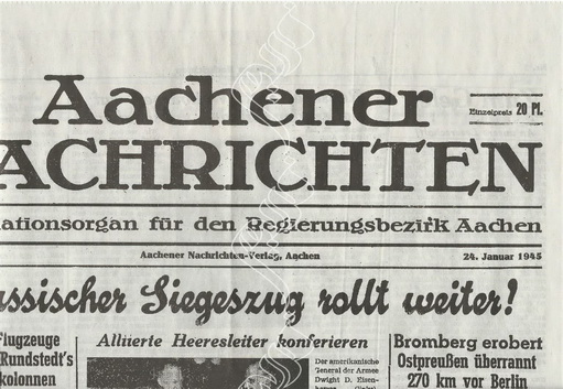 أغسطس 1948م العدد الأول / السنة الأولى طباعة معادة صحيفة "Aachener Nachrichten" العدد الأول بعد الحرب العالمية الثانية 24 يناير 1945م