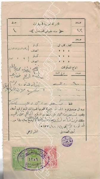 B4B-033 وثيقة استمارة نقل الحجاج من المدينة إلى مكة