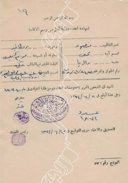 D3B-065 وثيقة إعفاء طلبة العلم من رسوم الإقامة