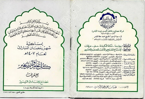D3C-152 وثيقة إمساكية رمضان إهداء مصنع رمضان شحاته أحمد القاهرة