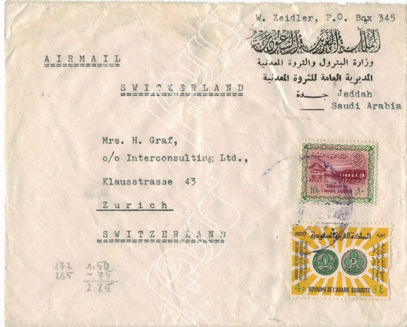 D3D-003 مغلف مسجل بريد حكومي إلى سويسرا وزارة البترول