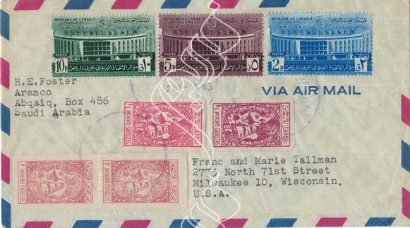 D3D-144 مغلف أرامكو طابع جوي 1949م قص خطأ