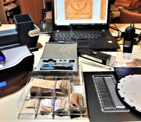 والنادرة المكتشفة شخصيا مع جميع الاختلافات الرسمية المتعلقة باختلاف التخريم والعلامات المائية والألوان ونوع الورق والمقاسات والتوشيحات، إضافة إلى طبعات تجريبية وعدد هائل من الأخطاء المطبعية النادرة ونماذج من التوشيحات المزورة. ملف لايتز 2.500 طابع 122 صفحة