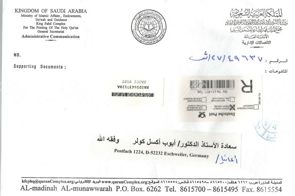 مغلف للمركز الإسلامي آخن طابع كأس العالم