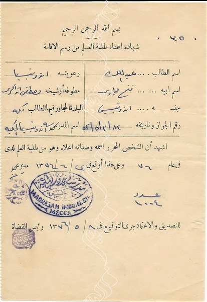 وثيقة إعفاء طلبة العلم من رسوم الإقامة
