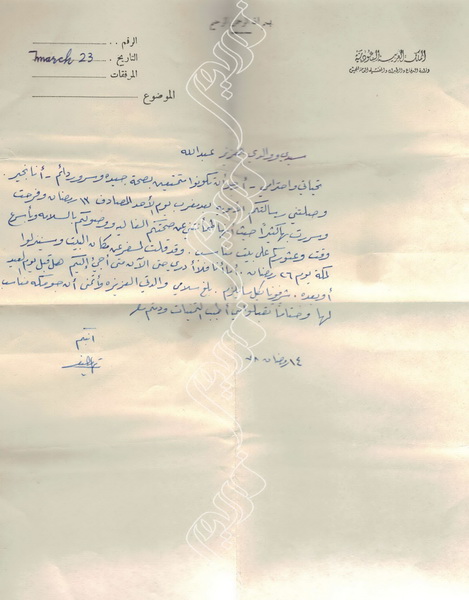 مع محتوى من تركي إلى والده الشيخ عبد الله التركي