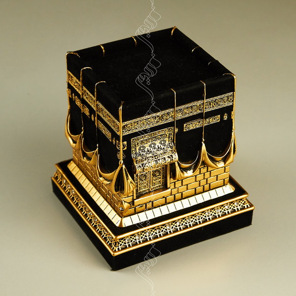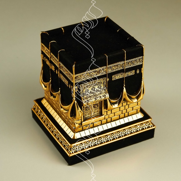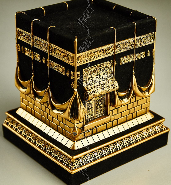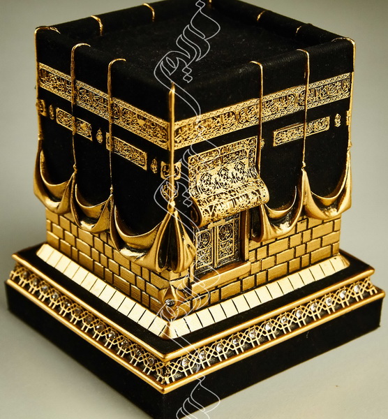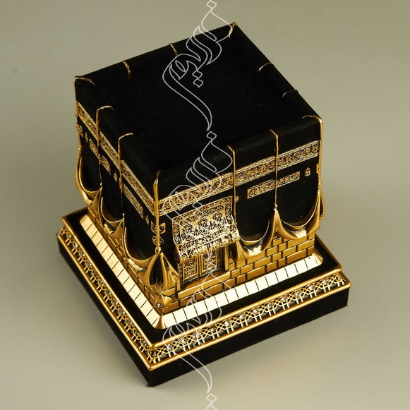 مجسم مجسم الكعبة المشرفة مصبوب من حديد الزهر المطلي بالألوان، أسود وذهبي إهداء د. أيوب كولر