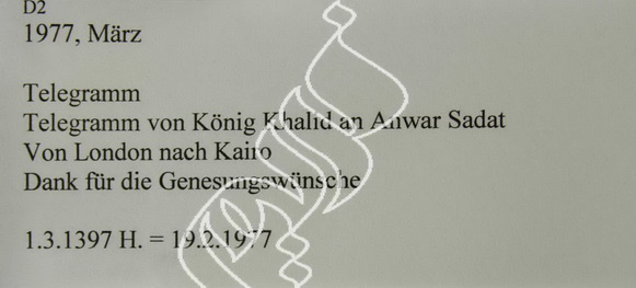 برقية من الملك خالد من لندن للرئيس أنور السادات
