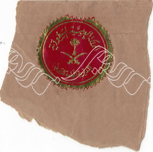"ملصقة مهر غلاف المديرية العامة للبريد السعودي ذهبي ـ على قصاصة مغلف"