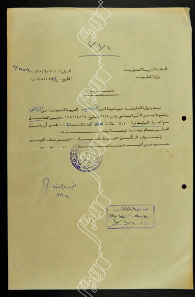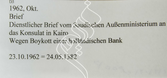مغلف رسمي من وزارة الخارجية السعودية للقنصلية بصدد مقاطعة بنك هولندي