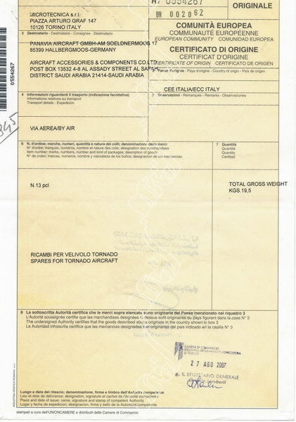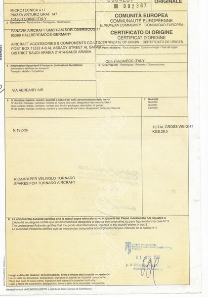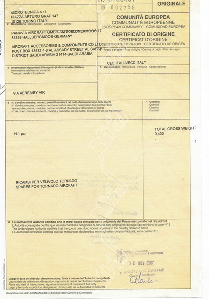 وثيقة فاتورة مبدئية لقطع غيار للسلاح الجوي