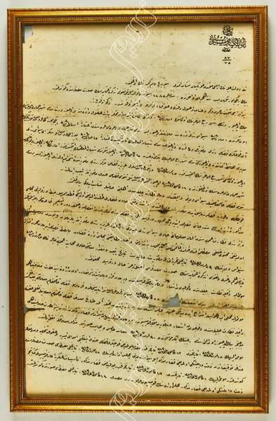 "رجب 1313 صك وثيقة عثمانية من الإدارة المالية في اسطنبول تحمل الوثيقة تسعة طوابع مالية نادرة للغاية لاحظ فن الخط العثماني في الطوابع العثمانية المالية أنظر الخلف إطار خشبي ذهبي 29 رجب 1313 هـ (1895.1.14 م) "