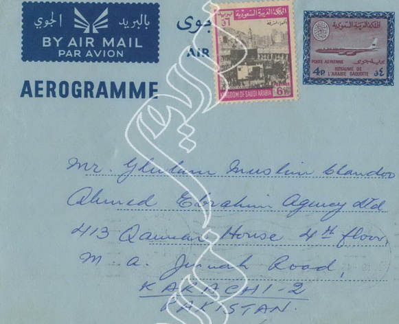 B2C-062 الطابع الجوي فيصل 1 أربعة قروش من مكة المكرمة إلى كراتشي